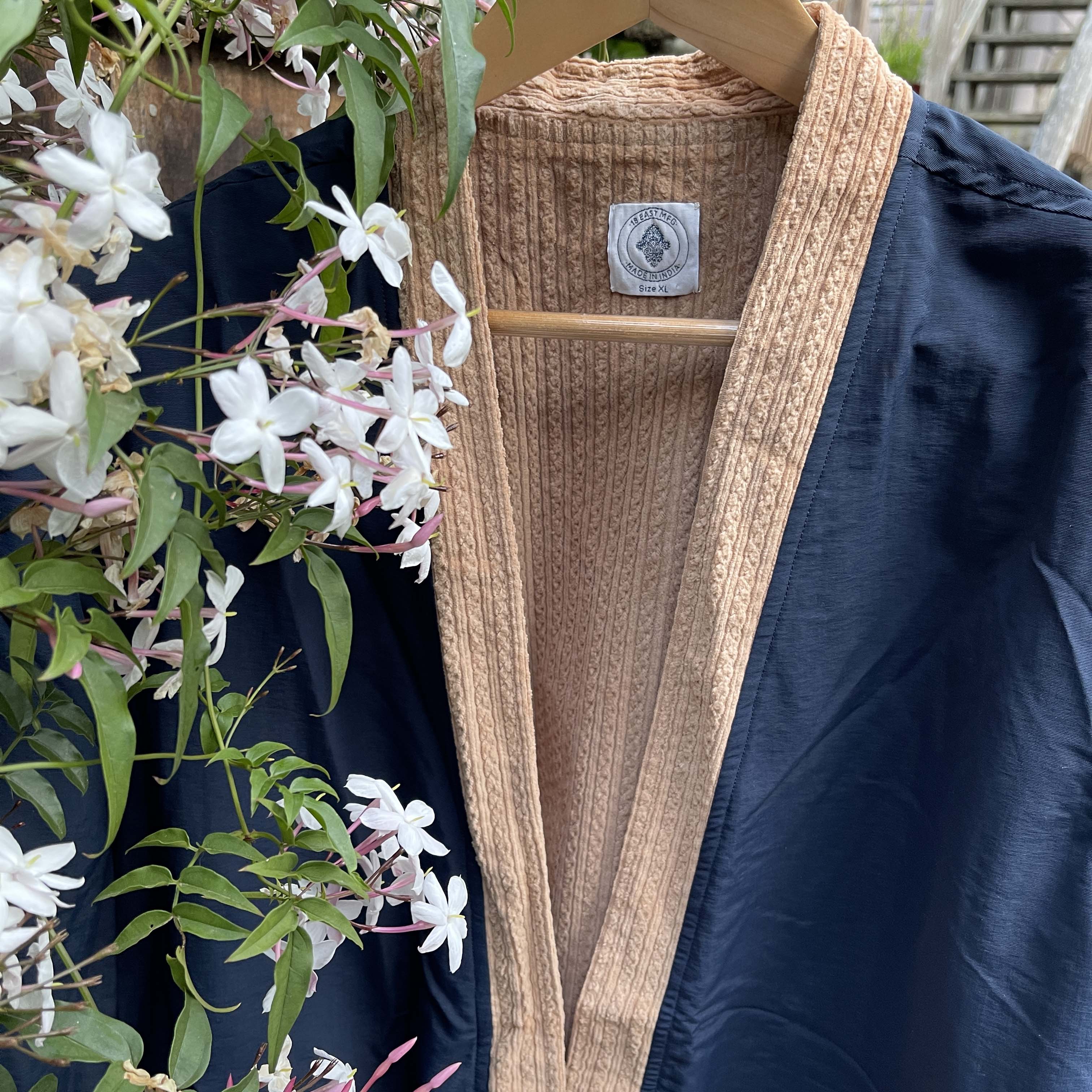 The blue side is made with DWR-coated, water-repellant recycled nylon and the flip side is a custom-milled Japanese cotton corduroy with cables (á la fisherman sweater) woven into the fabric. Freak this at the function or toss it on for the luncheon.